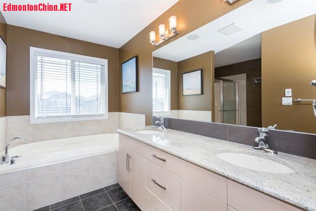 1 q% b' y. j* a) j+ ]; s举步二楼,四间卧室,其中三间可见池塘美景!主卧带有5pc卫浴(其奢华堪比SPA会馆)、超大可步入式衣橱!整装地下室另有两间卧室、一间全浴、小厅、小酒吧和超大家庭房!位置便利,临近学校、Hampton market shopping, WEM,驱车轻抵Anthony henday & whitemud !真正宜居美宅,机不可失!