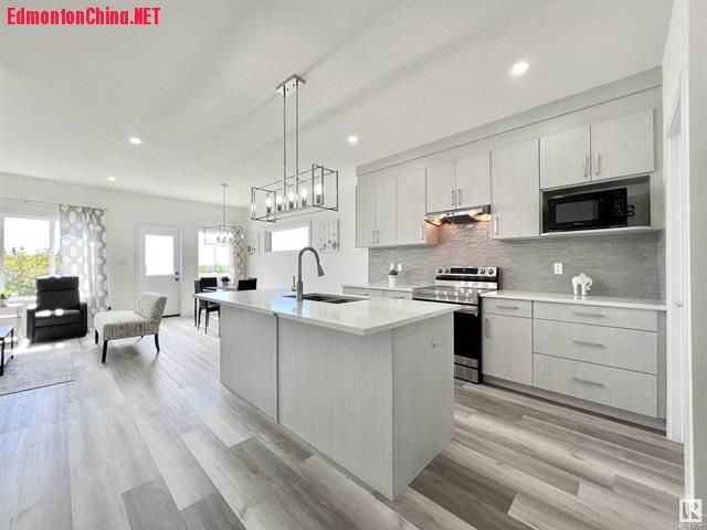 ! g4 B9 ]* d. N主层9尺挑高天花板,石英台面熠熠生辉,工艺地板寸寸雅致、电壁炉有精致瓷砖装点,更有全升级SS级电器、整体定制橱柜,开放式设计有额外明窗,一室温馨明丽!