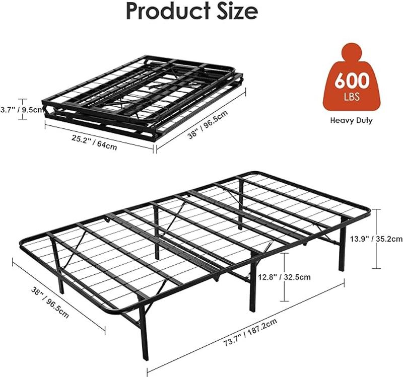 14-inch Foldable Metal Platform Sturdy Steel Twin Size single Bed Frame, Tool-Free Assembly