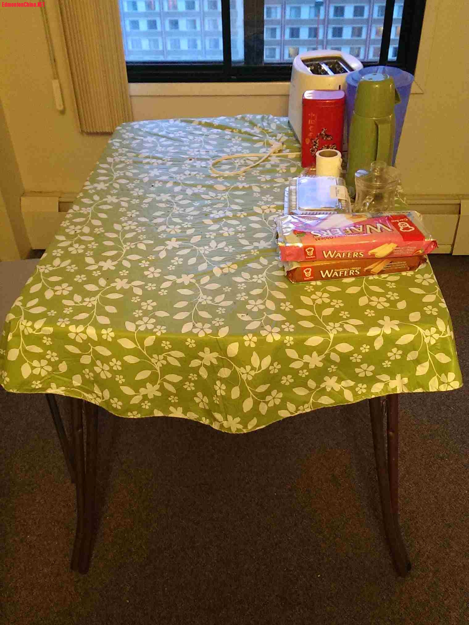 3 N# u( T* P. f( [餐桌10元,送旁边的椅子。这是有桌布的一张。4 P( A$ i7 d4 K+ Q3 [, W/ p