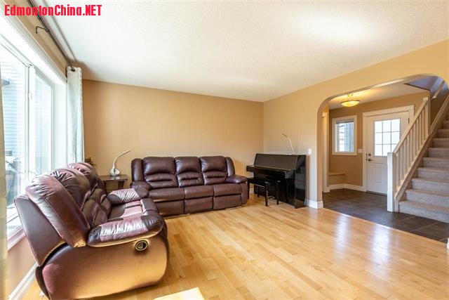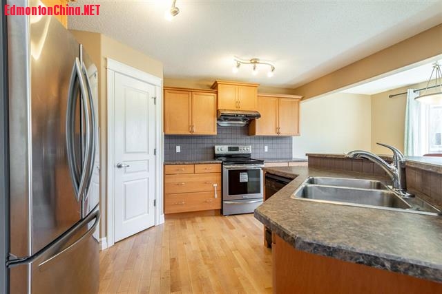 8 f% ]3 J* ]+ a; b+ n. i南向后院、毗邻步行道!西南Rutherford好区双层美宅,步行Monsignor Fee Otterson Elementary/Junior High School!精心维护的好房提供超1800平尺宜居空间,全新粉刷,设有3卧2.5卫浴和一间超大弹性房。步入室内,宽敞门厅令人惊艳。主层开放式设计,硬木地板和瓷砖足下生辉。宽敞客厅中超大明窗让自然光完美洒落!美食厨房中配备了全套枫木橱柜、不锈钢电器、转角餐具存储间、拉升饭岛吧!餐厅设有拉门可直达后院甲板!楼上弹性房设有转角燃气壁炉,三间宜居卧室。主卧配备了超大可步入式衣橱和一间3pc卫浴间,设有独立花洒!位置优越,临近公交车站、购物中心和各种生活便利设施,驱车轻抵Anthony Henday & QEII!