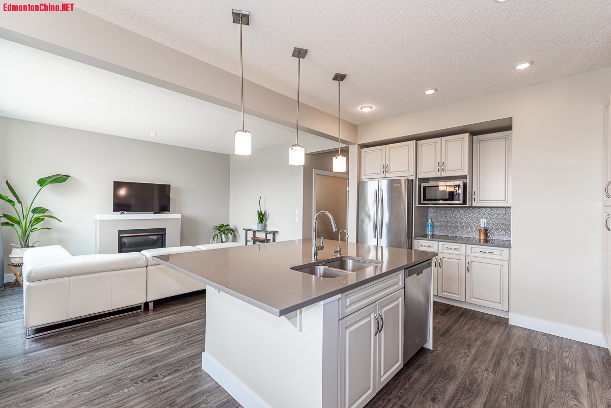 ! o J( Q8 a7 z* H步入室内,宽敞门厅令人惊艳。主层9尺挑高天花板,铺设了工艺地板,更有便利书房!舒适客厅中燃气壁炉温馨舒适,周边瓷砖装点,宽敞明窗可纵览公园美景!美食厨房安装了全套白色橱柜、整体玻璃防溅墙、全套不锈钢电器、品质抽油烟机!超大饭岛铺设了石英台面。" Z1 P* A" h/ Y+ |- R/ `