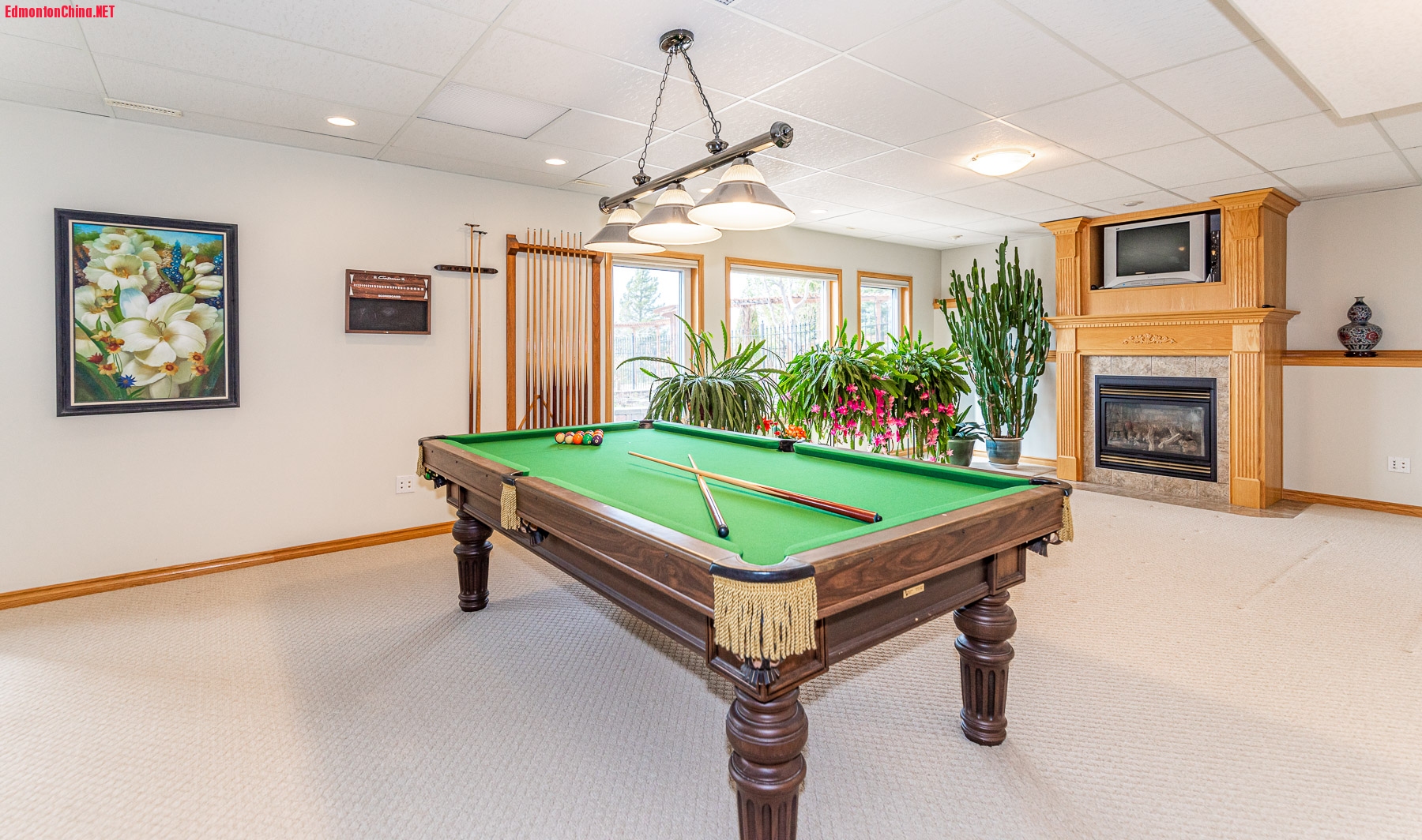 WALKOUT整装地下室自成天地!此处设有第四间卧室、影音房,宽敞家庭房,橡木燃气壁炉静燃温馨!