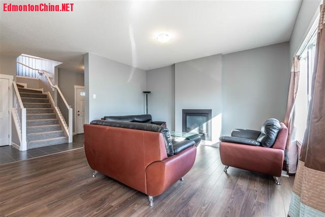 缓步二楼,主卧设有可步入式衣橱、5pc卫浴间,另外两间卧室和一套4pc卫浴套间,更有宽敞弹性房。后院景观完成、藩篱合围。位置便利,驱车轻抵购物中心和各色饭店。临近学校、公园、影院、公交车站,分分钟可到 Anthony Henday Drive!: n4 [* B% N, u