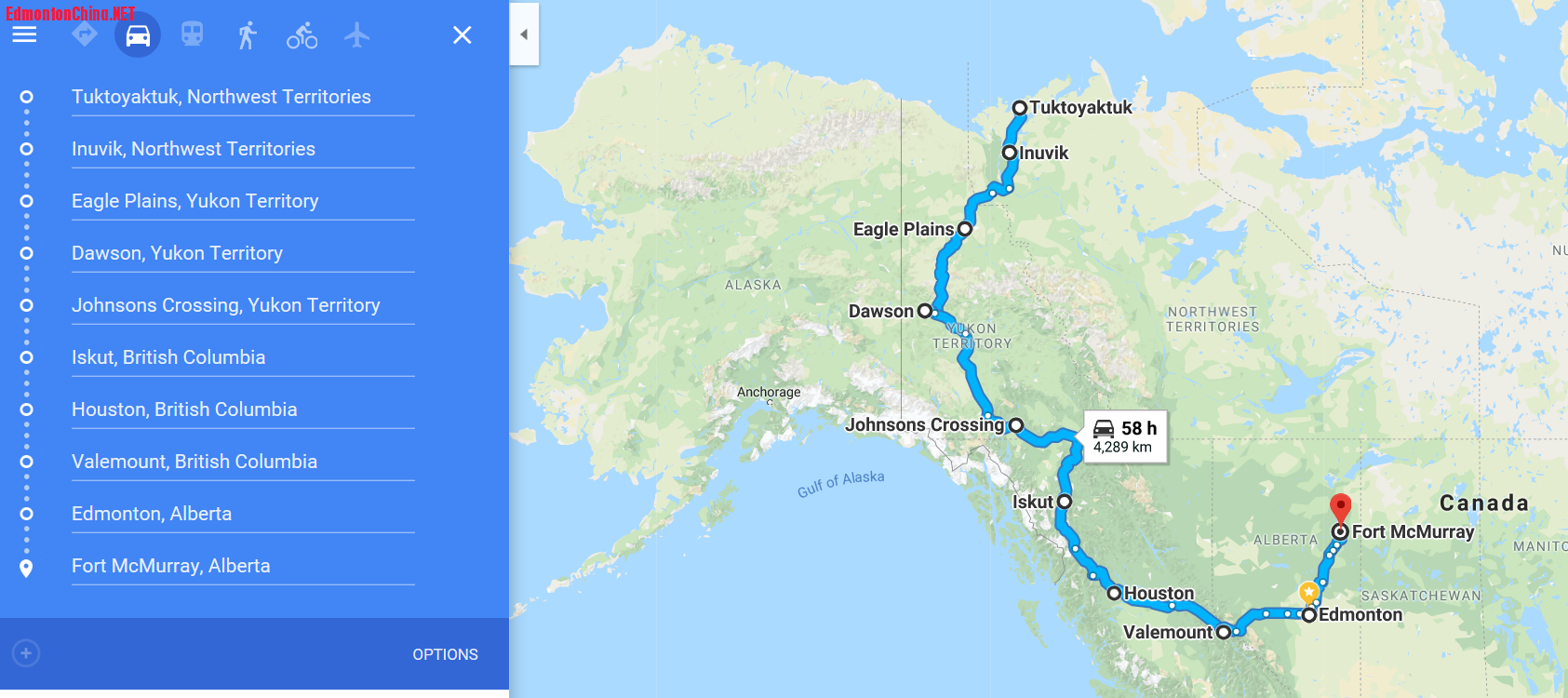 加拿大唯一有公路去北极圈的地方是育空地区大名鼎鼎的道森市,Yukon曾经的首府。1896年 Stockum Jim, George Carmack,Dawson Charlie等人在 Robert Henderson的带领下在Klondike River 的支流RabbitCreek ( Bananza River) 首次发现了黄金,消息传来,大批淘金者蜂拥而入,美国各地有100多万人都在计划来到道森。道森的砂金金含量很高,达到80%左右,相当于18K-20K金首饰的含量,其余是白银,锌,在加国历史上19世纪Dawson 曾是 Winnipeg 以西西雅图以北加拿大最大的城市。淘金高峰时,达10 万人之众。