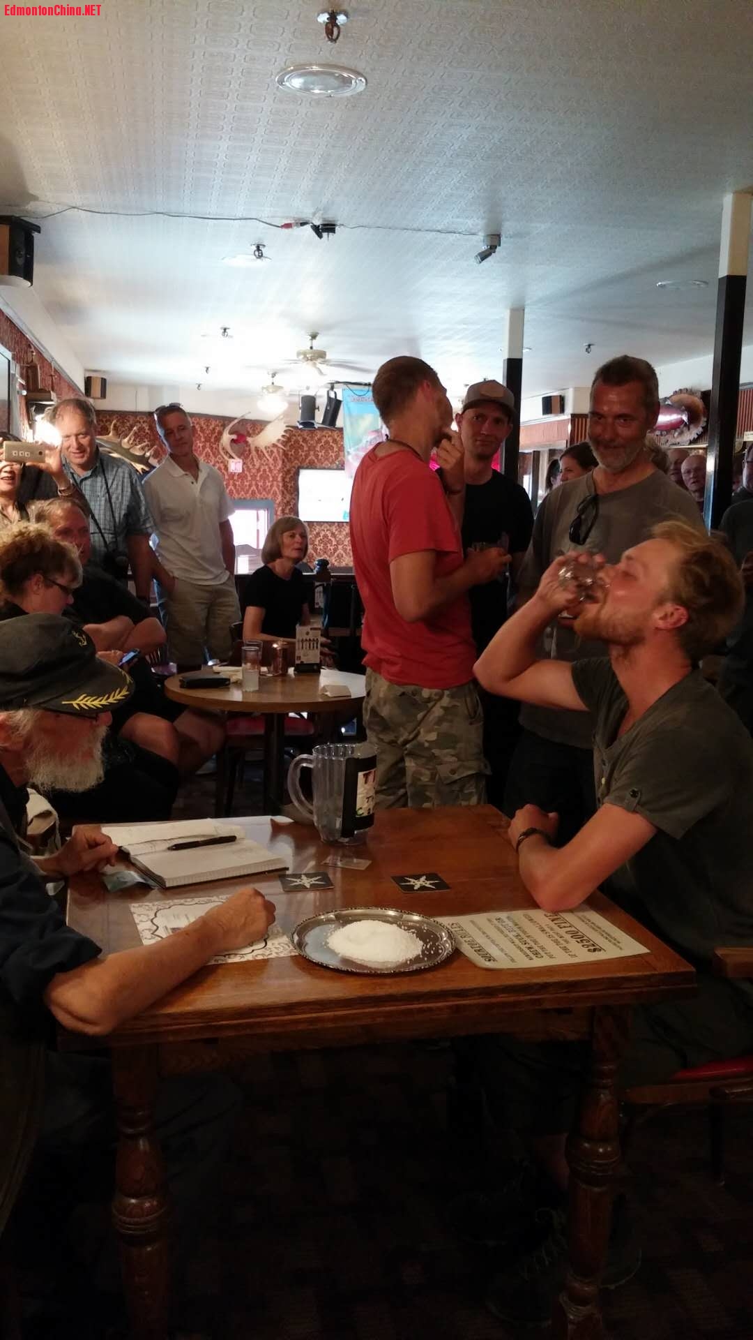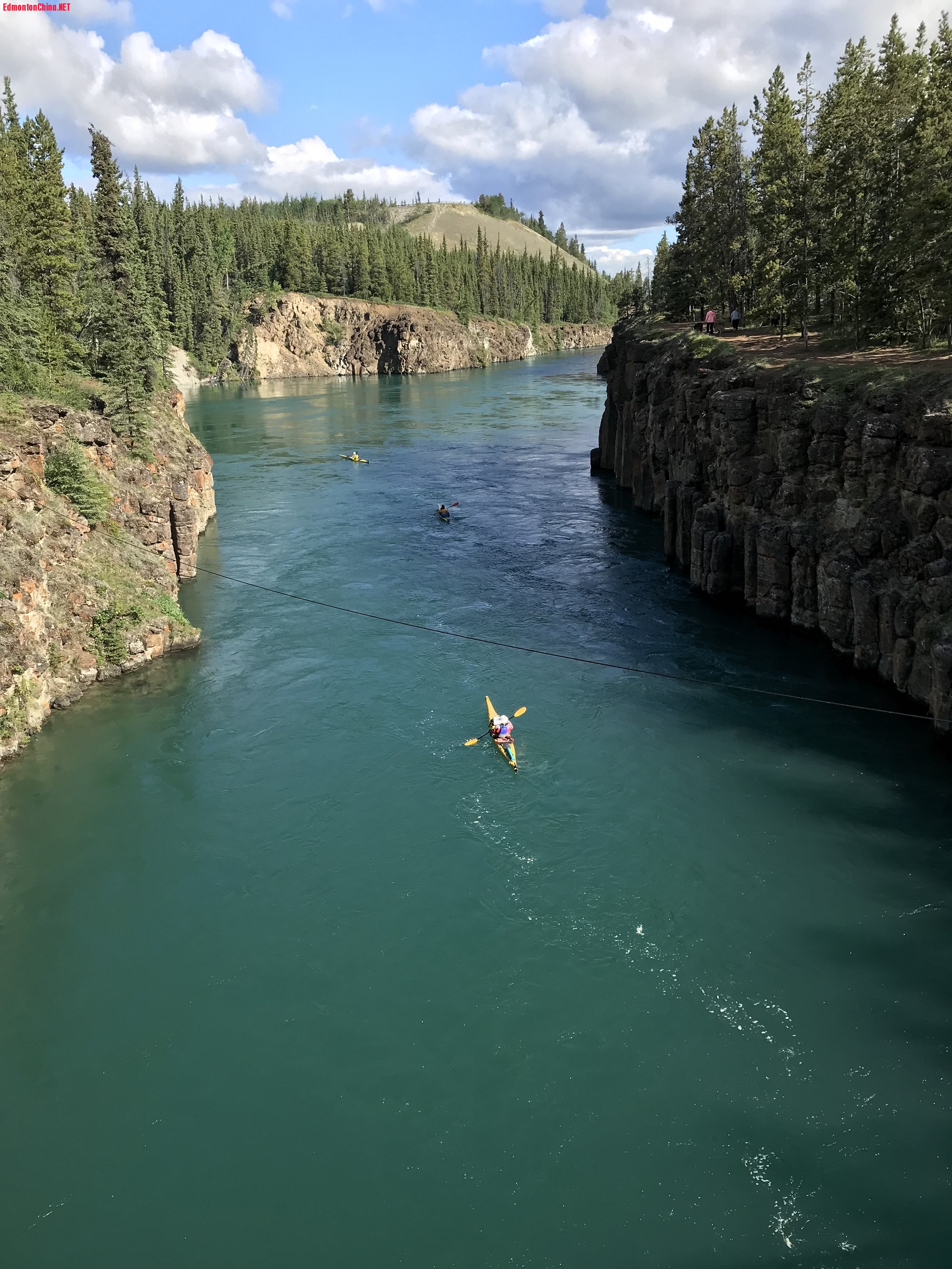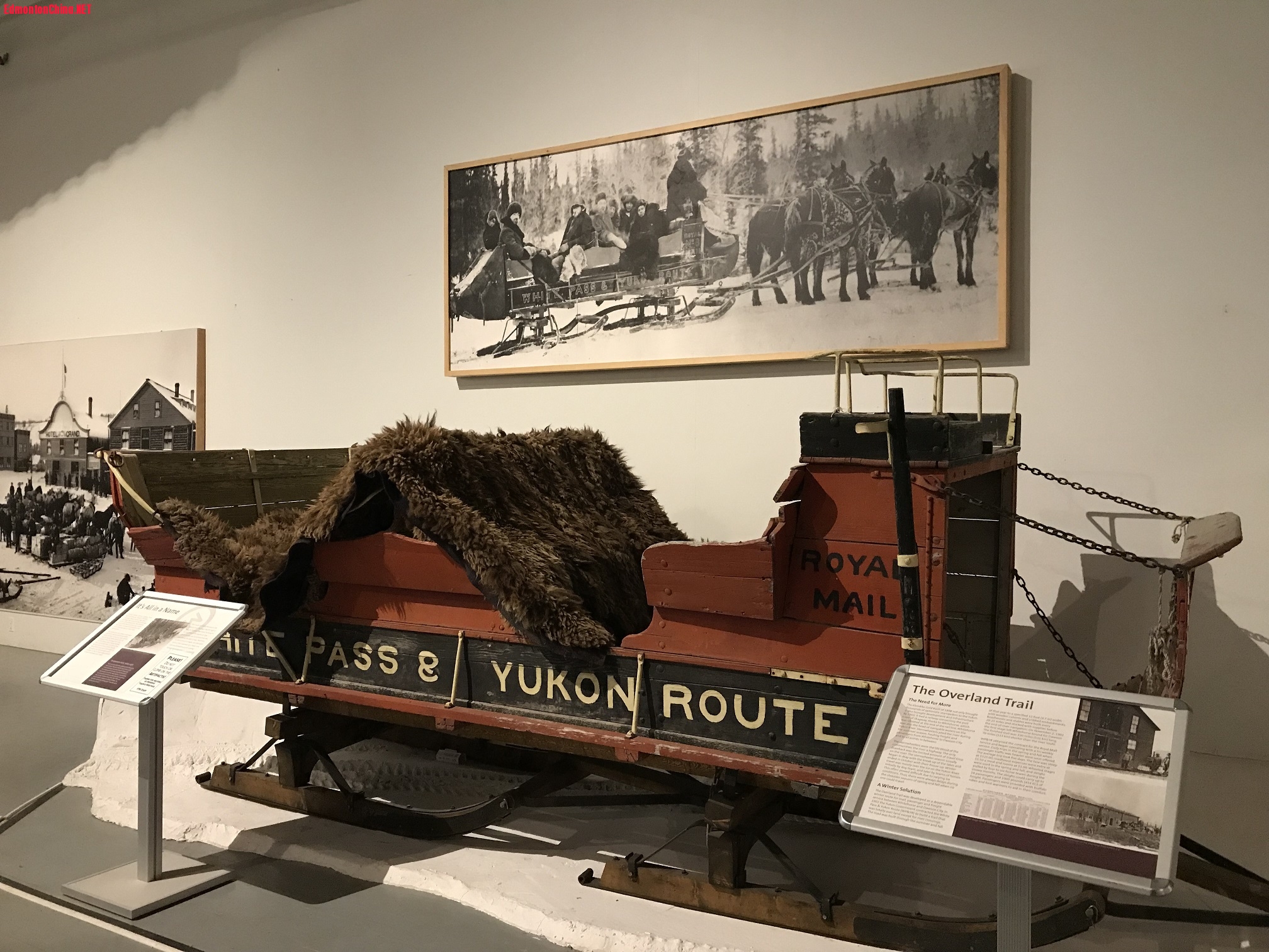 2 E6 @5 e4 {2 ^! [当时淘金者必须在 Whitehorse 坐船沿 Yukon River北上, 然后翻过 Chilkoot Pass雪山, 还要带上睡袋 (铺盖 ) 和粮草, 交纳通关费,才能到达淘金之地。来早的人在河滩上就能检到金块, 但只有极少数人发了财, 大多数人都空手而归。 据说 1896-1904 共挖出了当时价值一亿美元的金子。1904 年后, 金子已被掏空,人员尽数离去, 现只有长住人口1,500人,白人和印地安人各半。